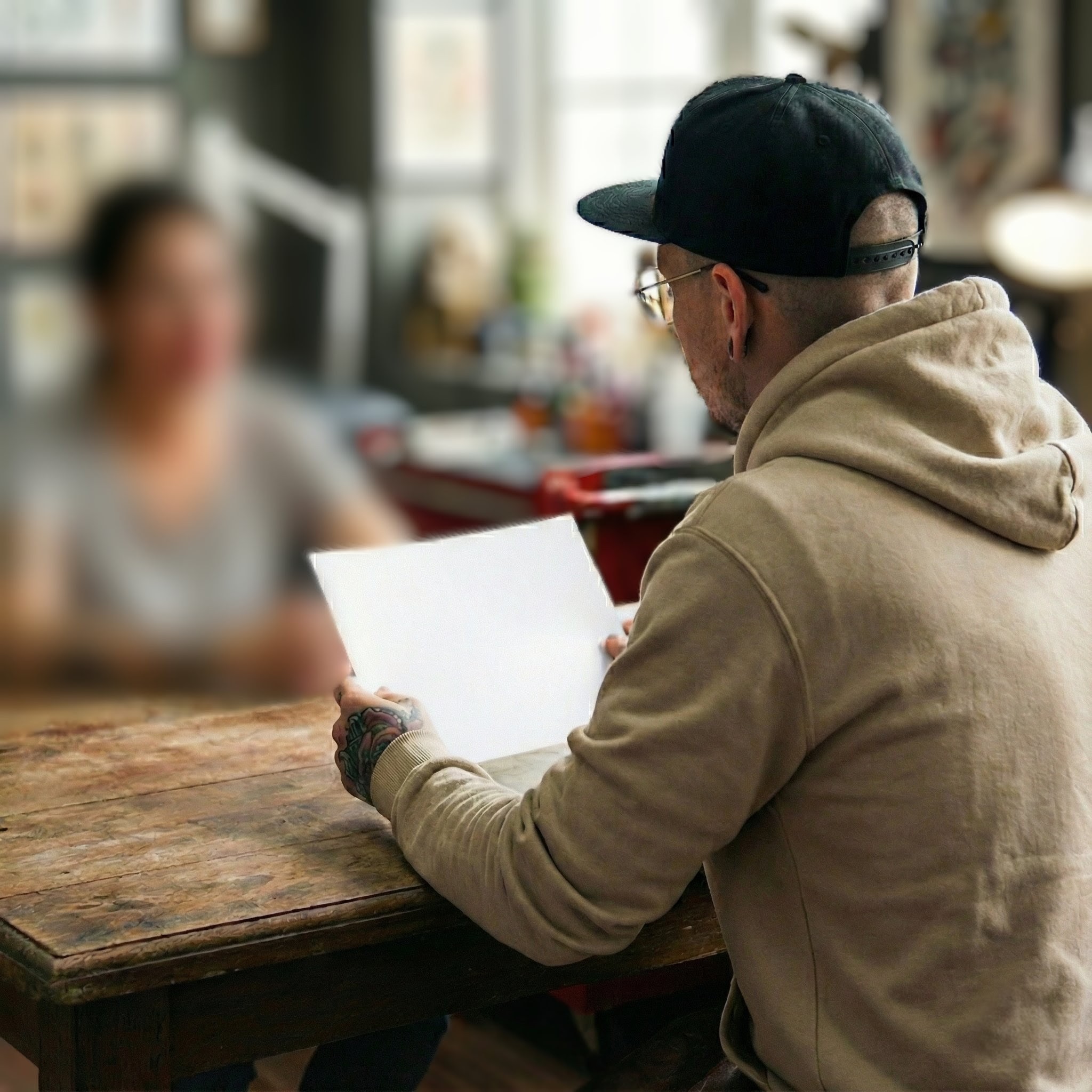 Chaque tatouage commence par une discussion, un échange pour comprendre votre histoire et saisir l’essence de ce que vous souhaitez graver.